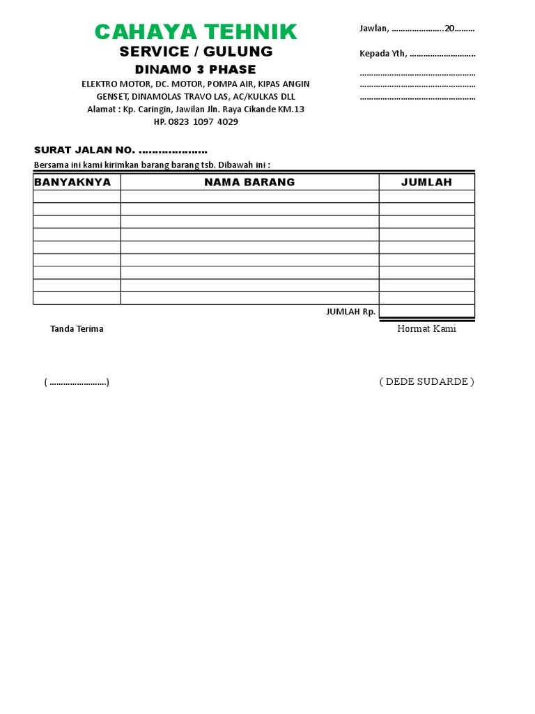 Contoh Surat Jalan Siap Edit Anekacontoh