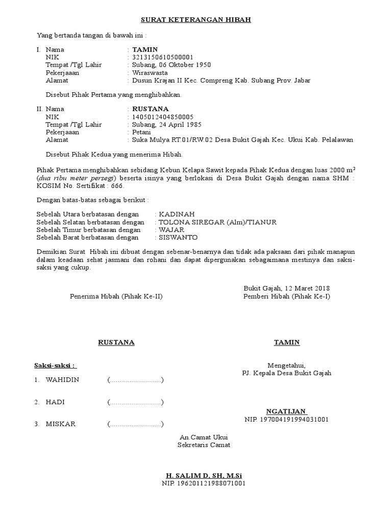 Contoh surat hibah seiring dengan perkembangan zaman dan kecanggihan teknologi sekarang ini maka penggunaan surat sebagai media komunikasi juga sudah semakin berkurang. Contoh surat hibah mendengar kata hibah tentu bukan sesuatu hal yang baru lagi untuk kita semua. Demikian surat pelepasan hak milik tanah ini dibuat dengan sebenar benarnya dalam keadaan sehat jasmani dan rohani serta tanpa ada paksaan dan atau tekanan dari pihak manapun juga.