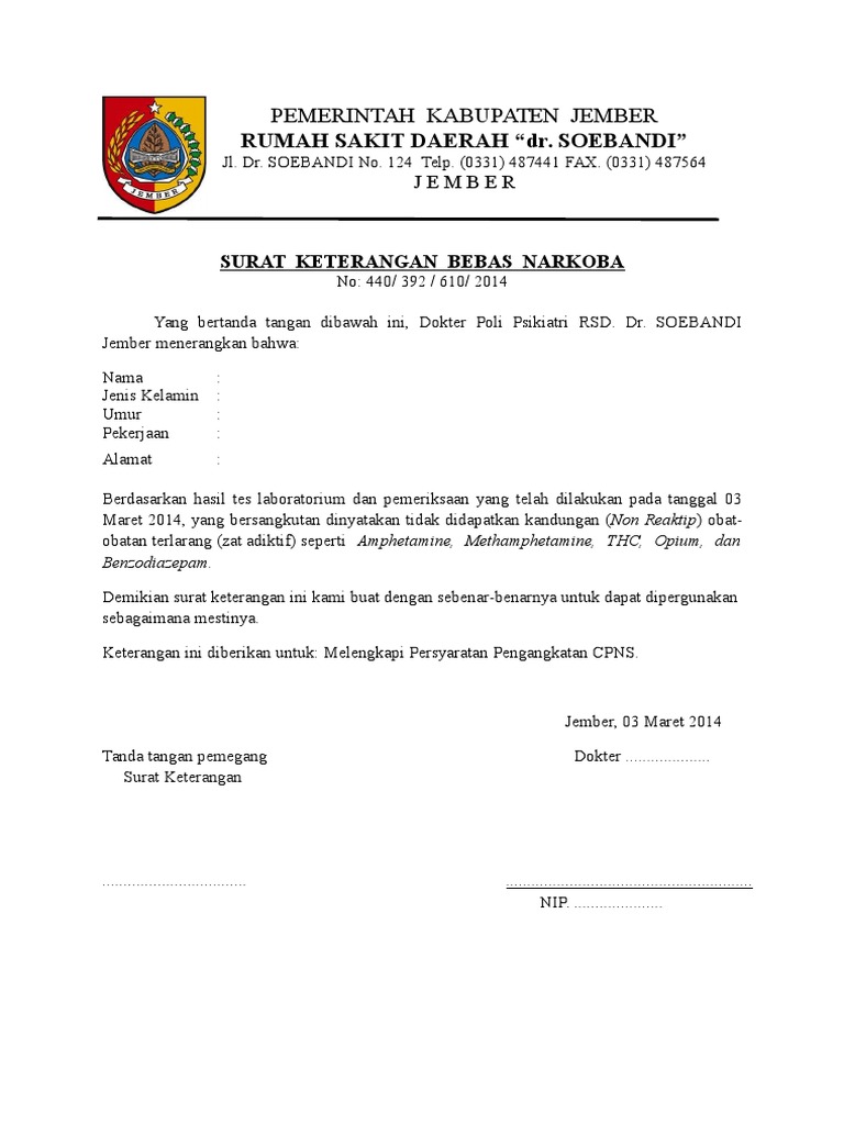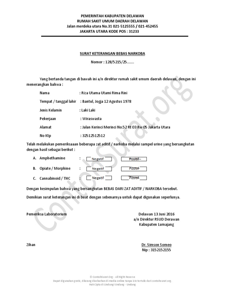 Surat Keterangan Bebas Narkoba Kumpulansurat Co Id