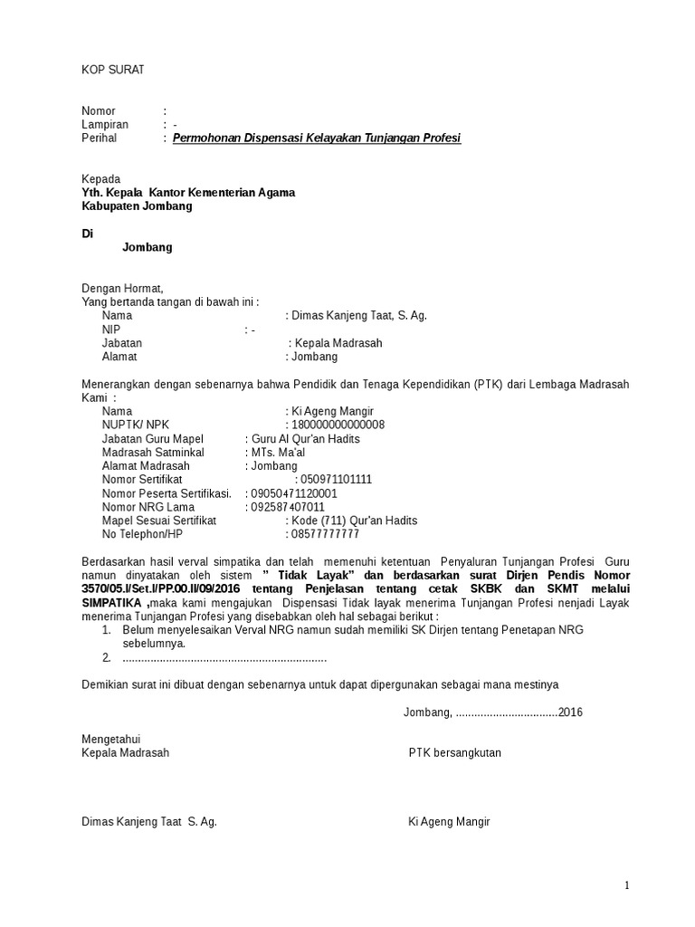 Contoh Surat Dispensasi Absen Ptk Di Simpatika Guru Jugan