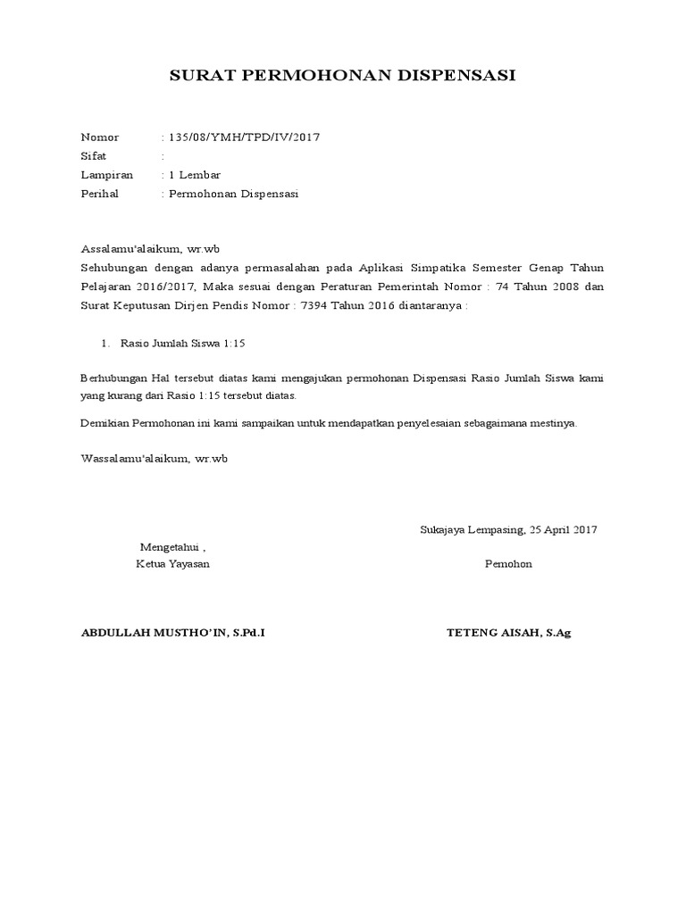 Contoh Surat Permohonan Dispensasi Yang Resmi Baik Dan Benar Format